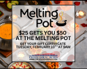 Fondue lovers, this one’s for you! With Cville Local Deals, just $25 gets you $50 to spend at The Melting Pot! Gift certificates go live Tuesday, February 10th at 9am, so don’t miss out!